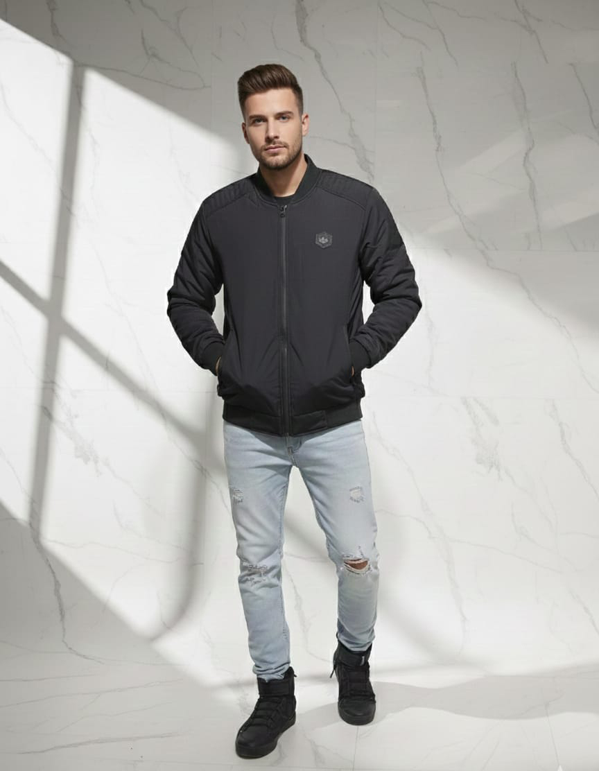 Modern Bomber Silhouette: A timeless cut featuring ribbed cuffs and a ribbed hem for a secure, wind-resistant fit.